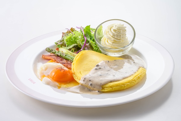 ふわふわのスフレパンケーキに、濃厚で香り高いトリュフソースをたっぷりとかけた、cafeVAVAの贅沢なひと皿。 トリュフの芳醇な香りが立ち上る瞬間から、五感が喜ぶ特別な時間がはじまります。とろりとした卵と絡めて味わえば、コクとまろやかさが加わり、... -